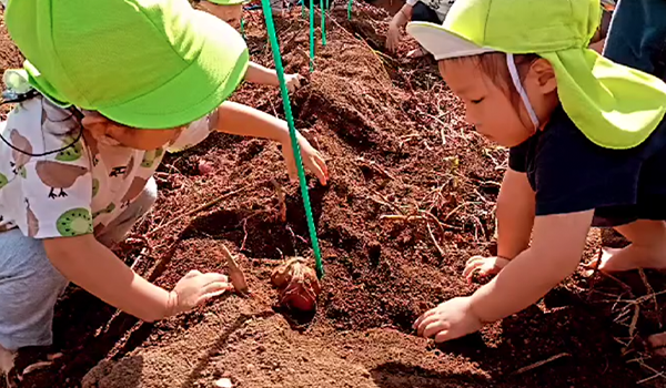 卒園児の進級先である近隣保育園と一緒にイベントを行なったり、近所の農家さんのご協力で芋掘りをさせてもらったりと、地域と皆さんとの繋がりを大切にしています。